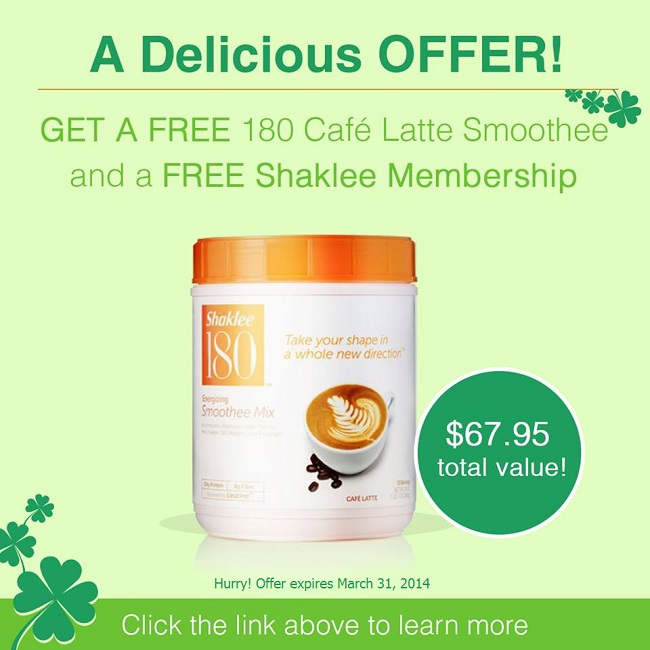Get a FREE Café Latte Smoothee canister and a FREE Shaklee membership with a qualifying order. $67.95 Total value. Hurry! Offer expires March 31, 2014.